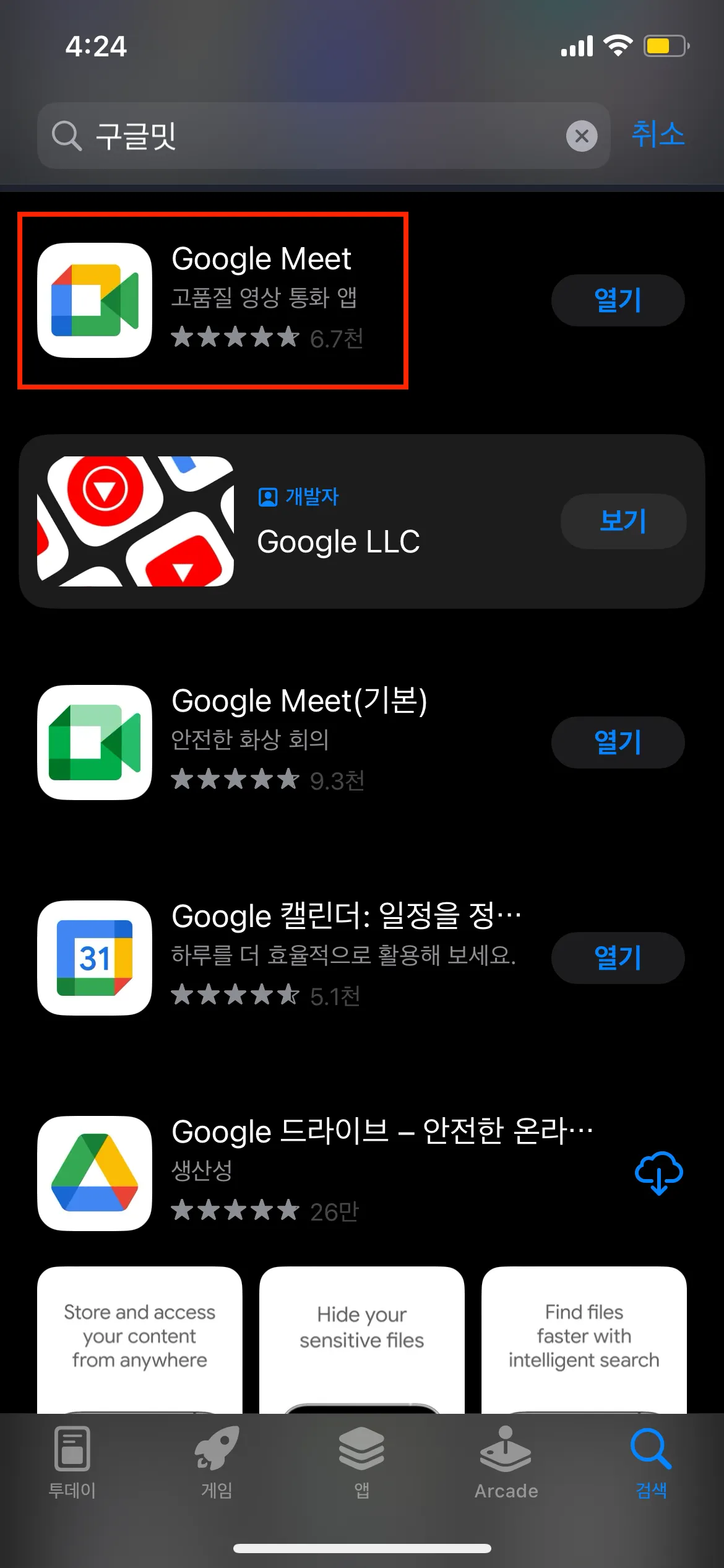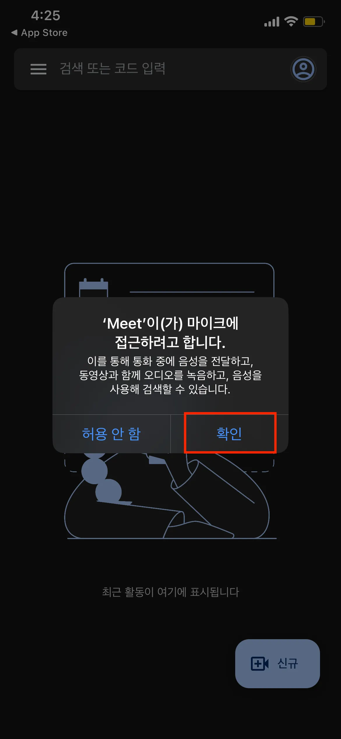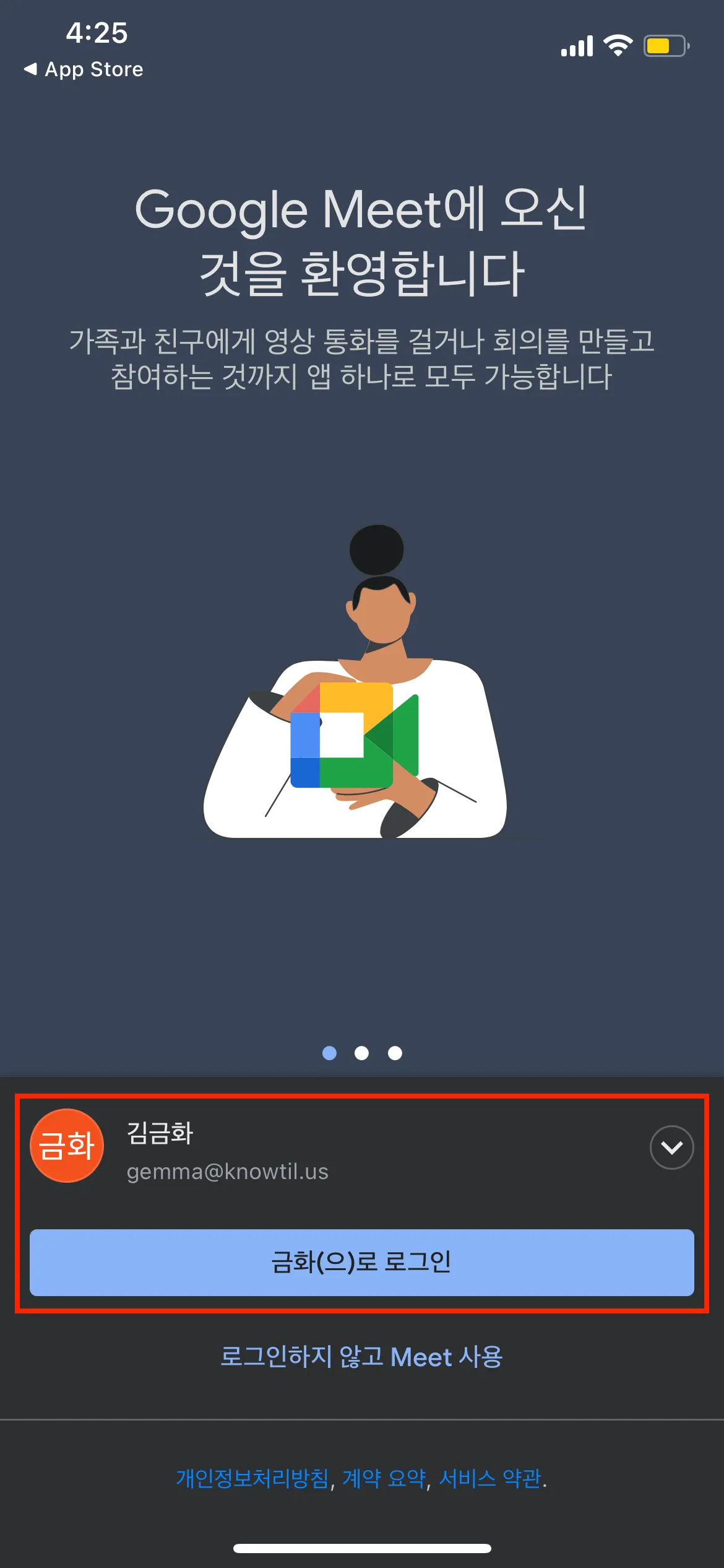 1. 구글 플레이 스토어 또는 앱스토어에서 [Google Meet]을 다운받아 주세요